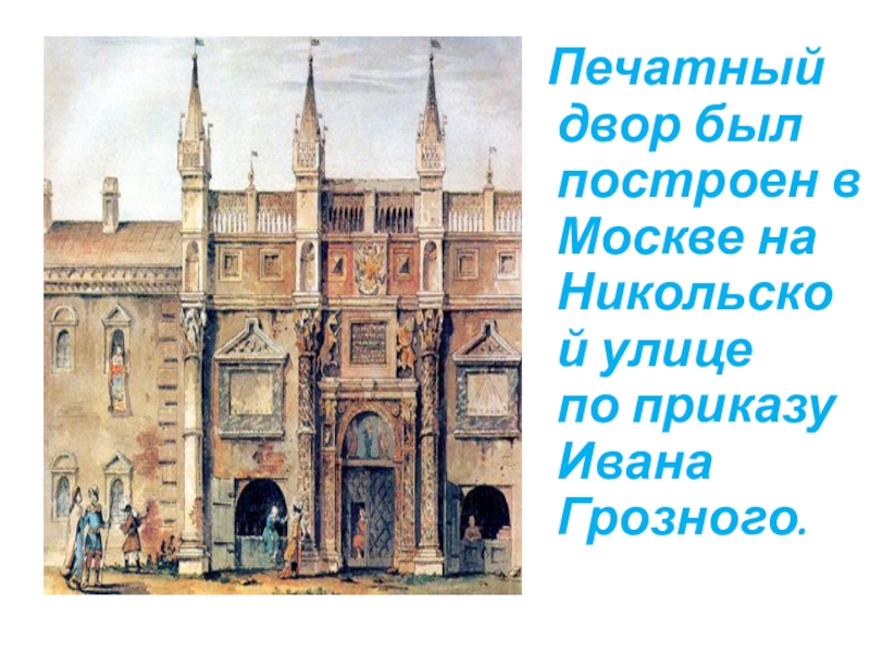 Слайд 3 Печатный двор был построен в Москве на Никольской улице