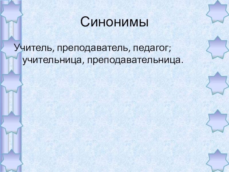 Синонимы Учитель, преподаватель, педагог; учительница, преподавательница.