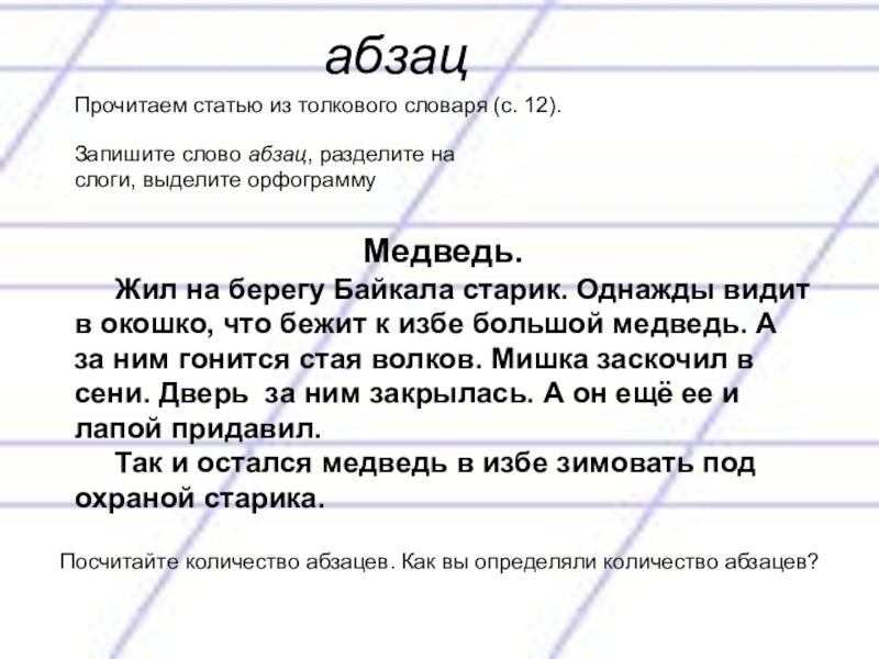 Посчитайте количество абзацев. Как вы определяли количество абзацев?