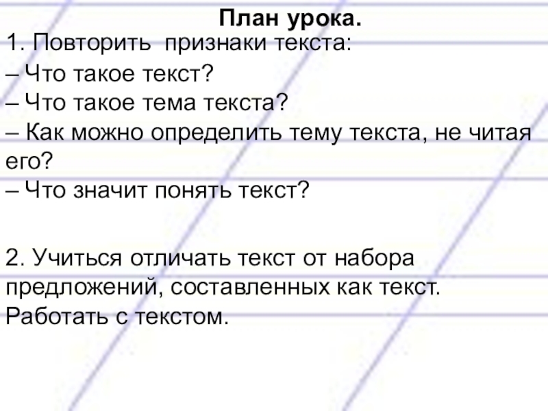 2. Учиться отличать текст от набора предложений, составленных как текст. Работать с текстом.