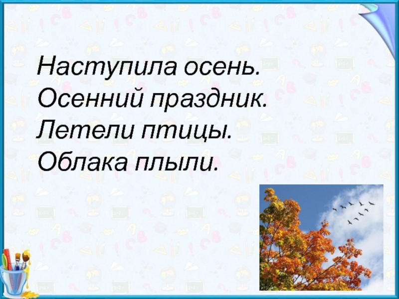 Наступила осень.Осенний праздник.Летели птицы.Облака плыли.