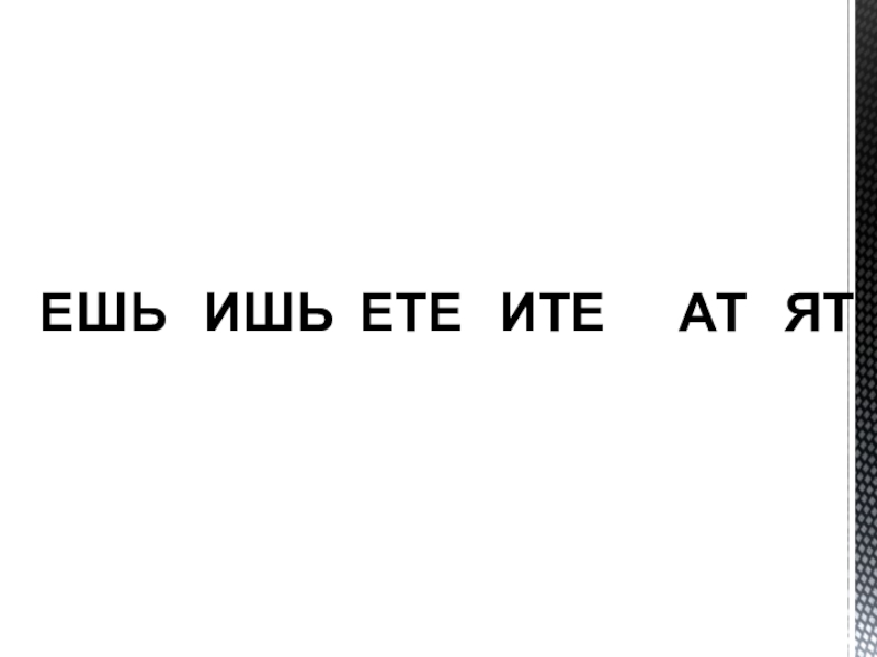 Слайд 3ЕШЬ   ИШЬ  ЕТЕ   ИТЕ      АТ   ЯТ