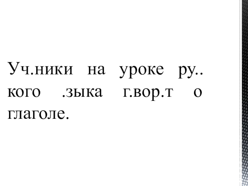 Слайд 6Уч.ники на уроке ру..кого .зыка г.вор.т о глаголе.