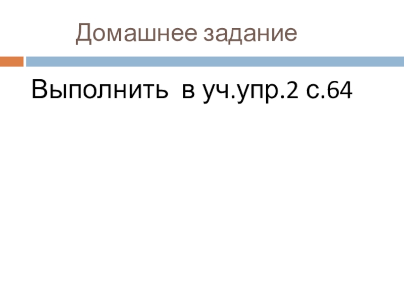 Домашнее заданиеВыполнить в уч.упр.2 с.64