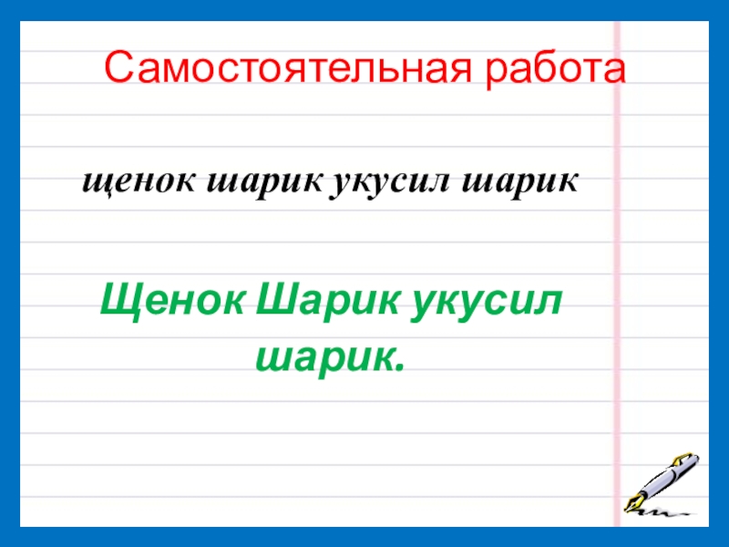 Самостоятельная работащенок шарик укусил шарикЩенок Шарик укусил шарик.
