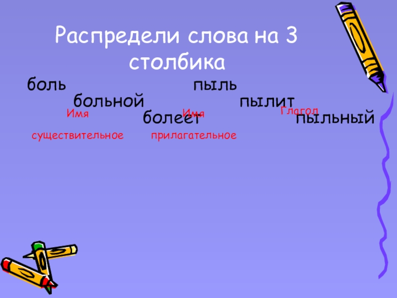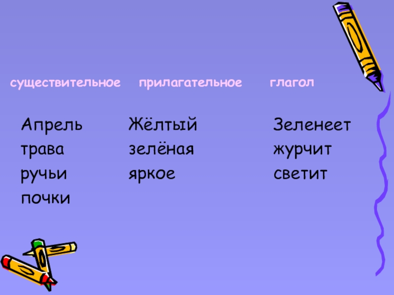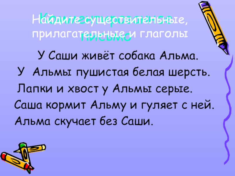 Найдите существительные, прилагательные и глаголы
