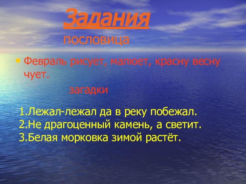 1.Лежал-лежал да в реку побежал.