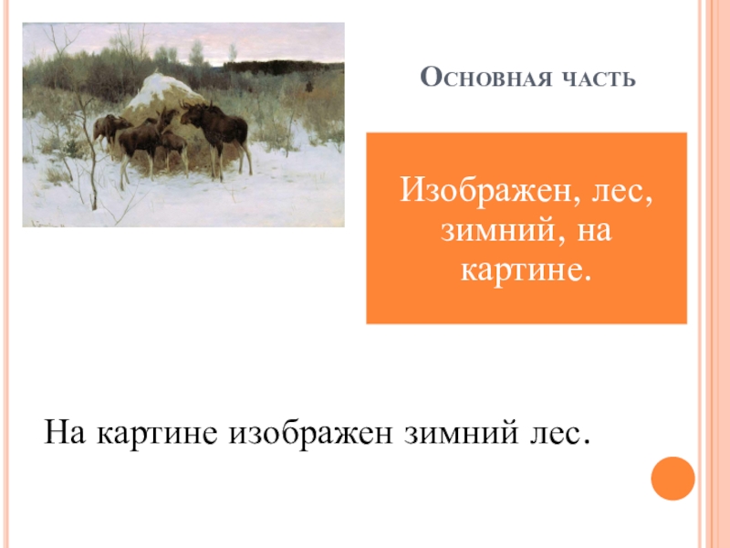 Слайд 1Развитие речи: Сочинение по репродукции картины А. С. Степанова «Лоси»