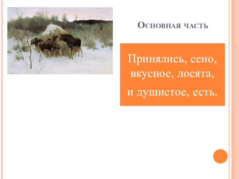 Основная частьЛосята принялись есть вкусное и душистое сено.