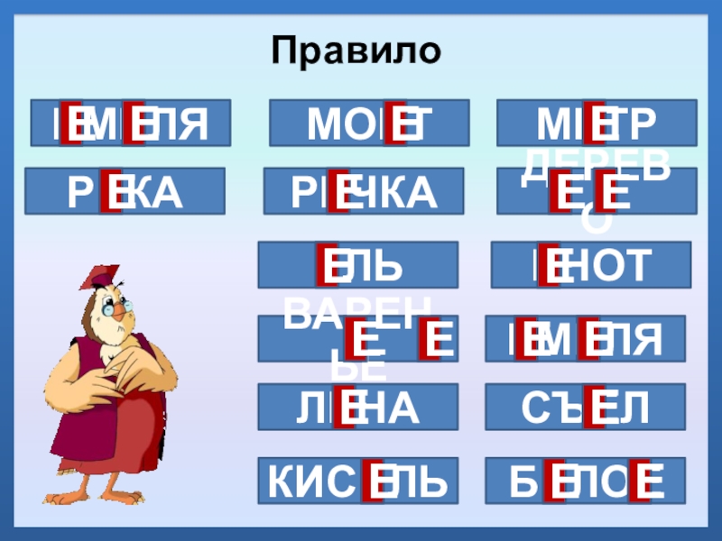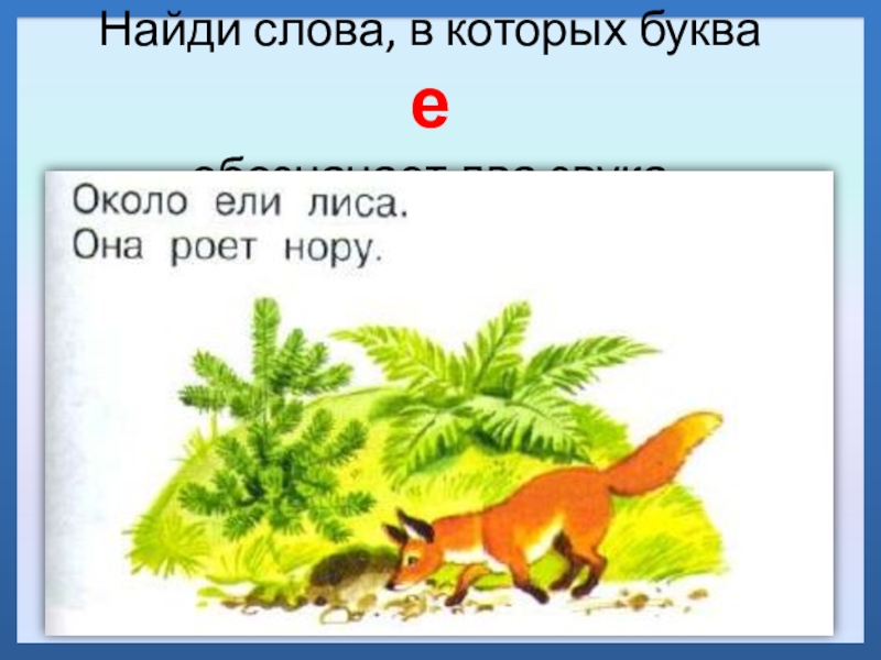 Слайд 8Найди слова, в которых буква е обозначает два звука