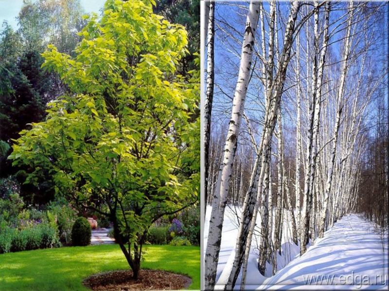 На сучьях деревьев жёлтые листья.