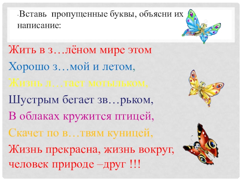 -Вставь пропущенные буквы, объясни их написание: