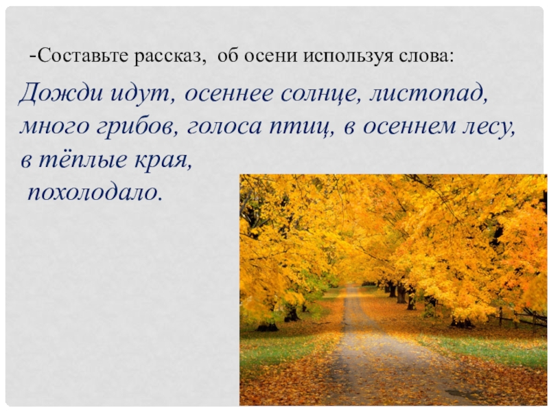 -Составьте рассказ, об осени используя слова: