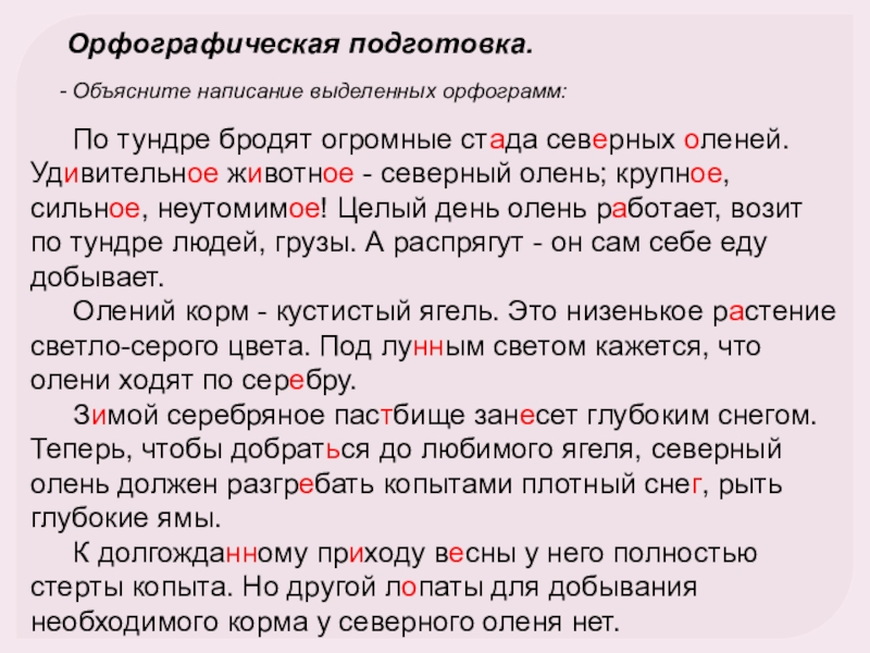 Слова для справок: неутомимое, распрягут, ягель, кажется, серебряное, копытами, необходимо.