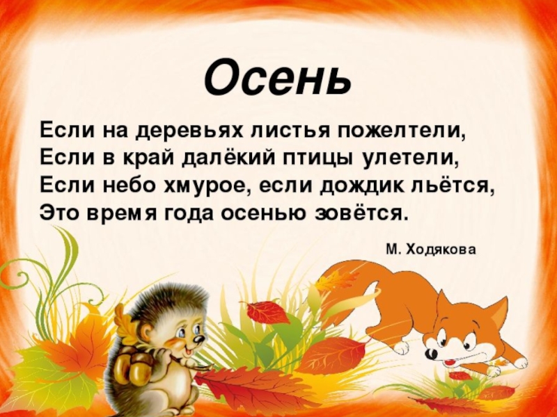 Осенью.Изменился наш сат. С берёски опали последние листья. Под дупками прячутся грипки. Уже нет слатких ягот. В