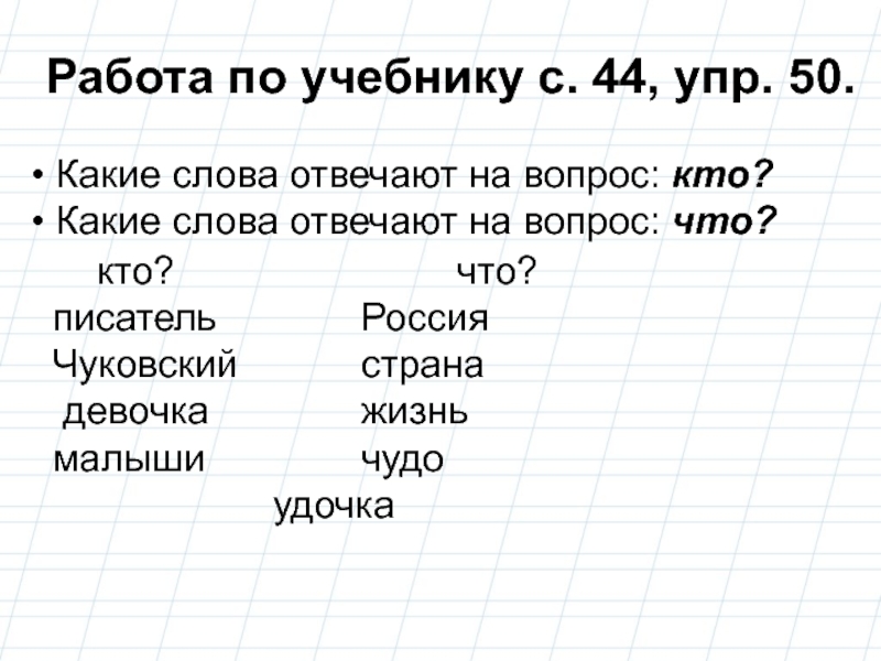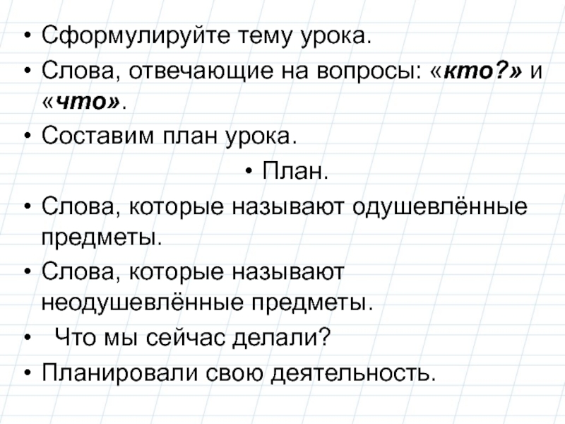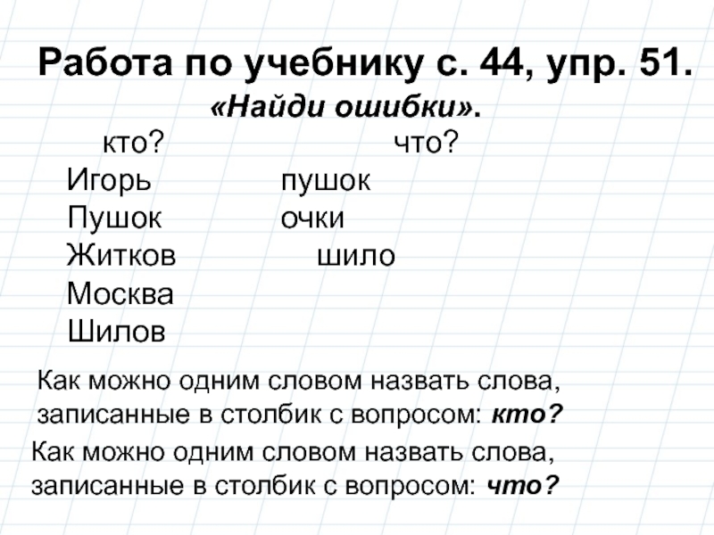 Как можно одним словом назвать слова, записанные в столбик с вопросом: что?