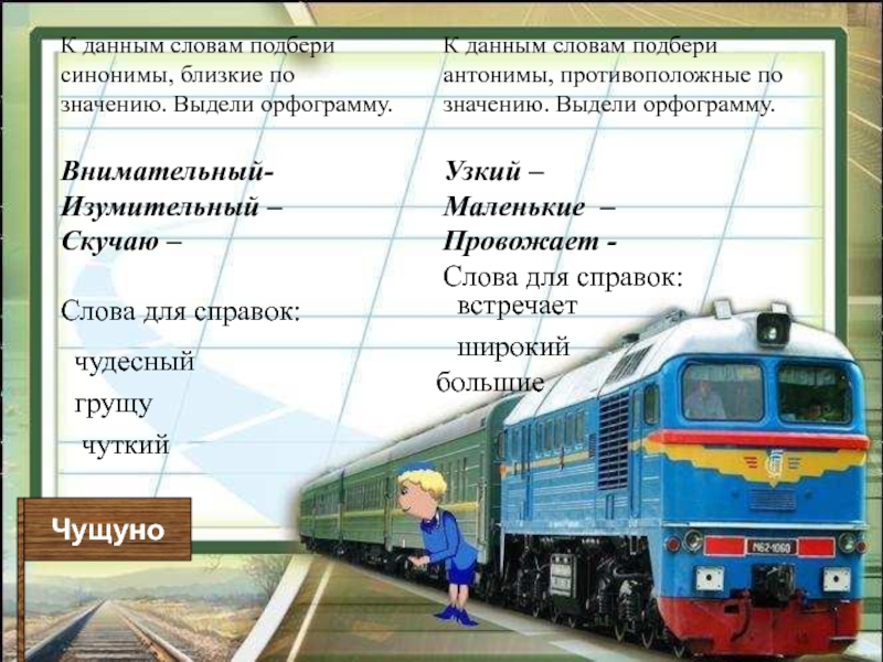 К данным словам подбери антонимы, противоположные по значению. Выдели орфограмму.