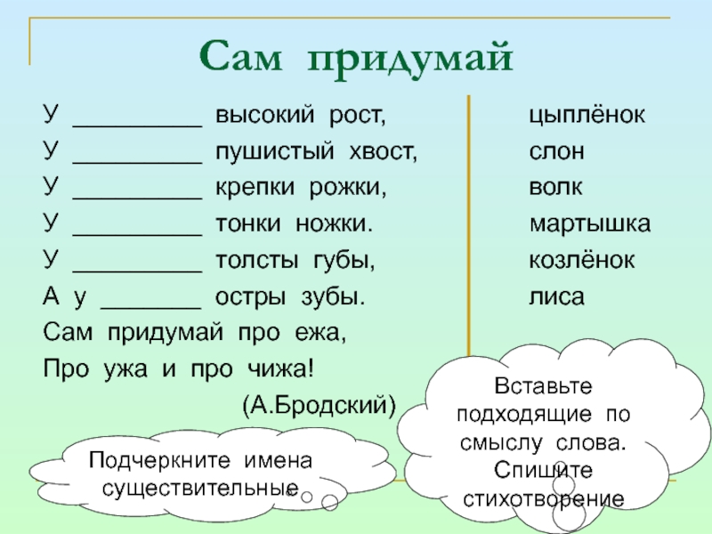 Вставьте подходящие по смыслу слова. Спишите стихотворение
