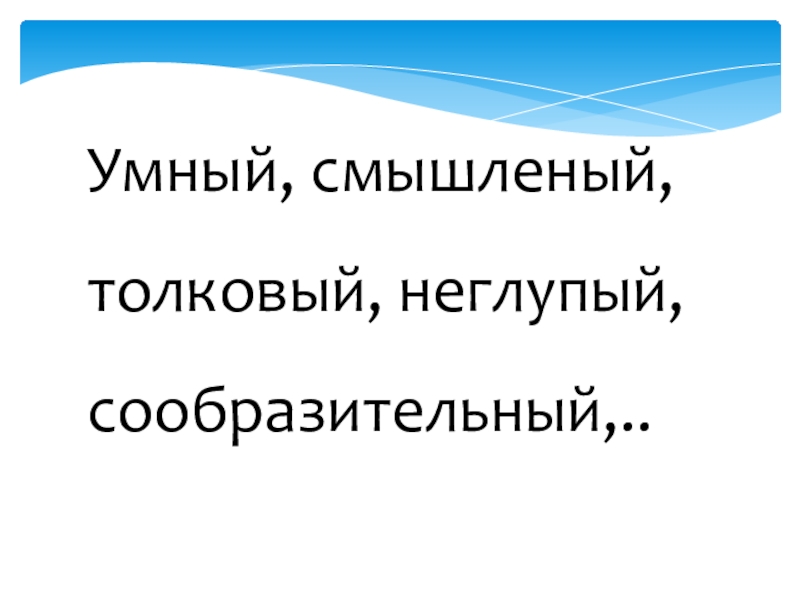 Слайд 4Умный, смышленый, толковый, неглупый, сообразительный,..