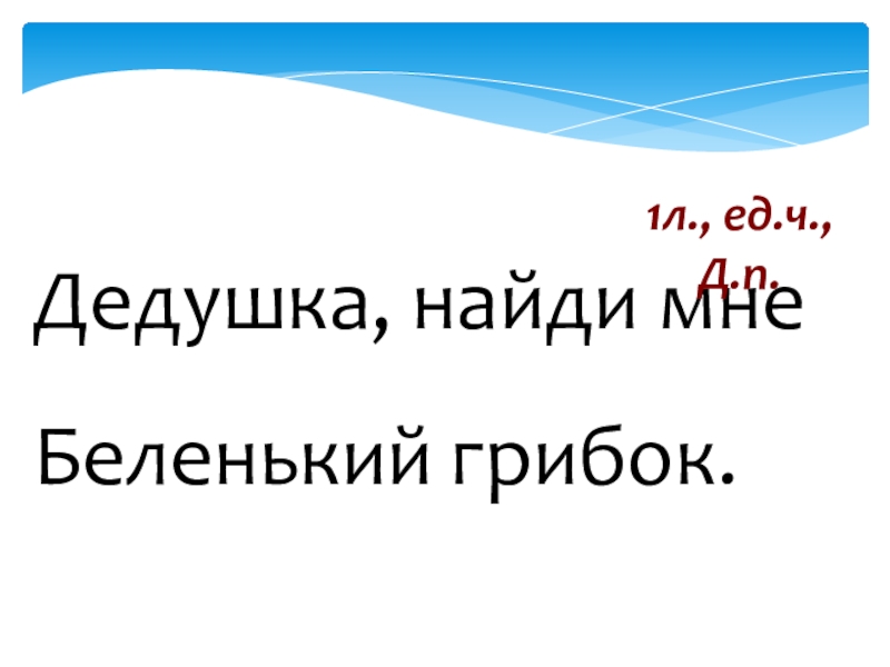 Дедушка, найди мнеБеленький грибок.1л., ед.ч., Д.п.