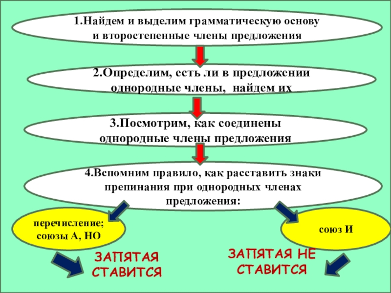 4.Вспомним правило, как расставить знаки препинания при однородных членах предложения: