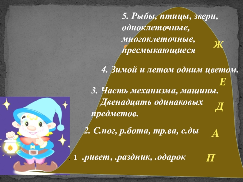 5. Рыбы, птицы, звери, одноклеточные, многоклеточные, пресмыкающиеся