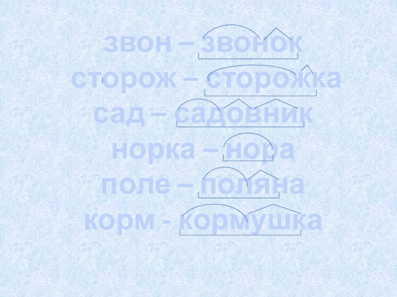 звон – звонок сторож – сторожкасад – садовникнорка – нораполе – полянакорм -