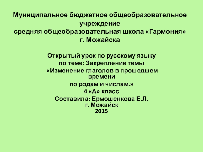 «Изменение глаголов в прошедшем времени