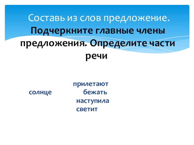 Составь из слов предложение. Подчеркните главные члены предложения. Определите части речи.