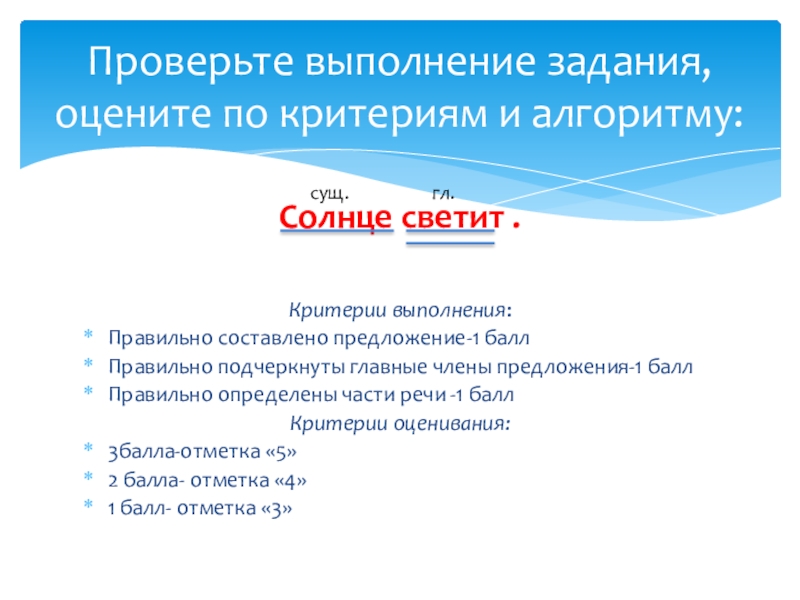 Проверьте выполнение задания, оцените по критериям и алгоритму: