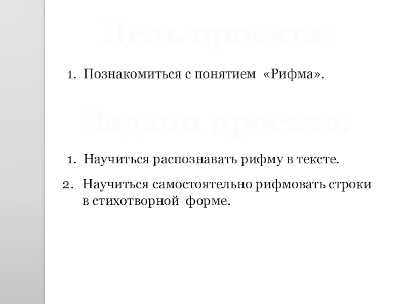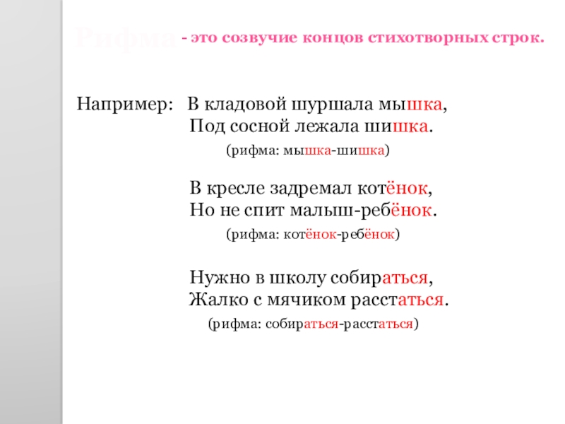 Научиться самостоятельно рифмовать строки в стихотворной форме.
