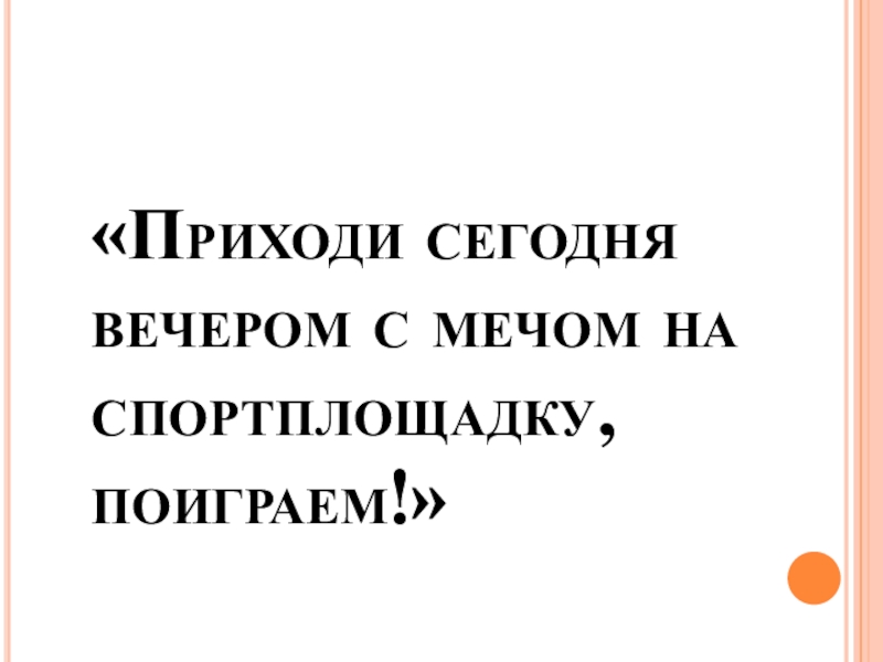 Слайд 2«Приходи сегодня вечером с мечом на спортплощадку, поиграем!»