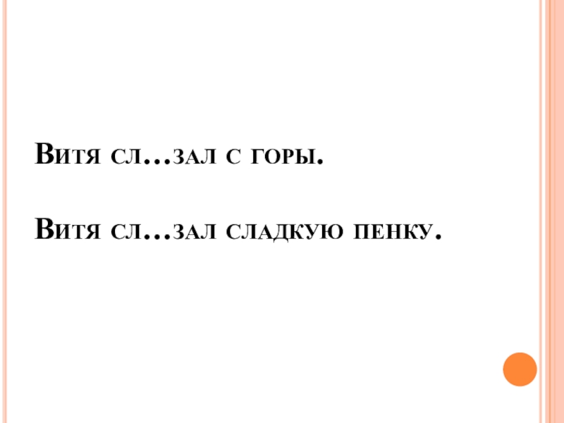 Слайд 10Витя сл…зал с горы. Витя сл…зал сладкую пенку.