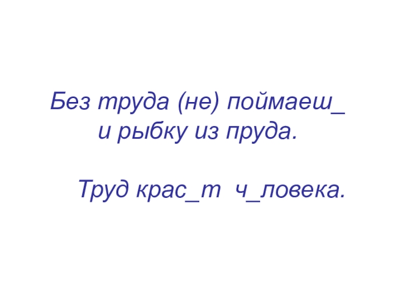 Без труда (не) поймаеш_  и рыбку из пруда.    Труд крас_т ч_ловека.