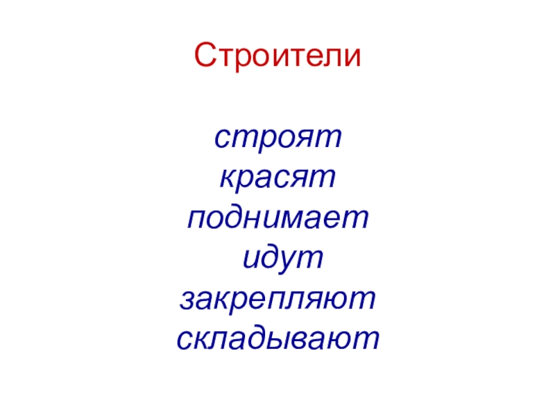 Слайд 10Строители строят красят поднимает идут закрепляют складывают