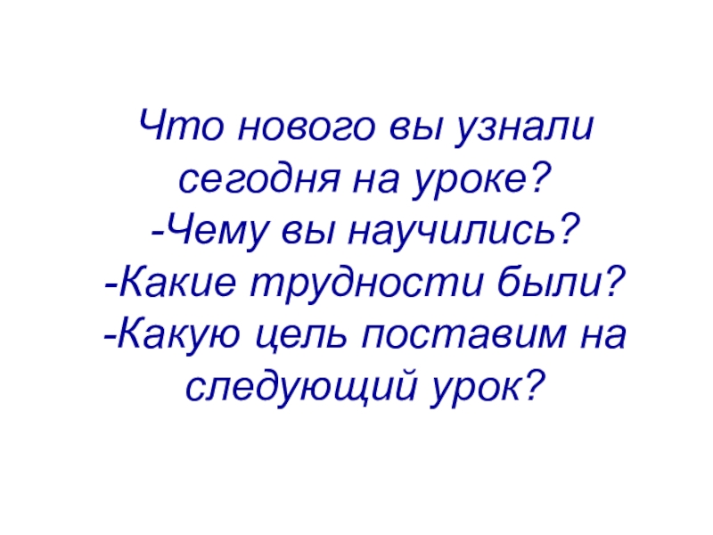 Слайд 16Что нового вы узнали сегодня на уроке? -Чему вы научились? -Какие трудности были? -Какую
