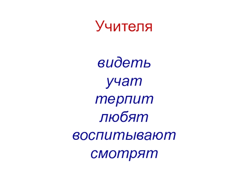 Слайд 13Учителя видеть учат терпит любят воспитывают смотрят