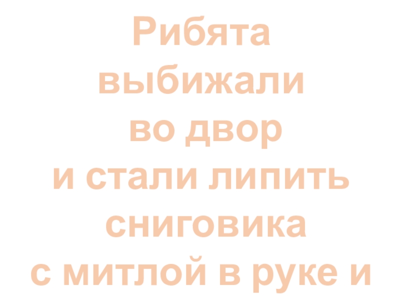 Рибята выбижали во двори стали липить сниговикас митлой в руке ис видром на галаве.