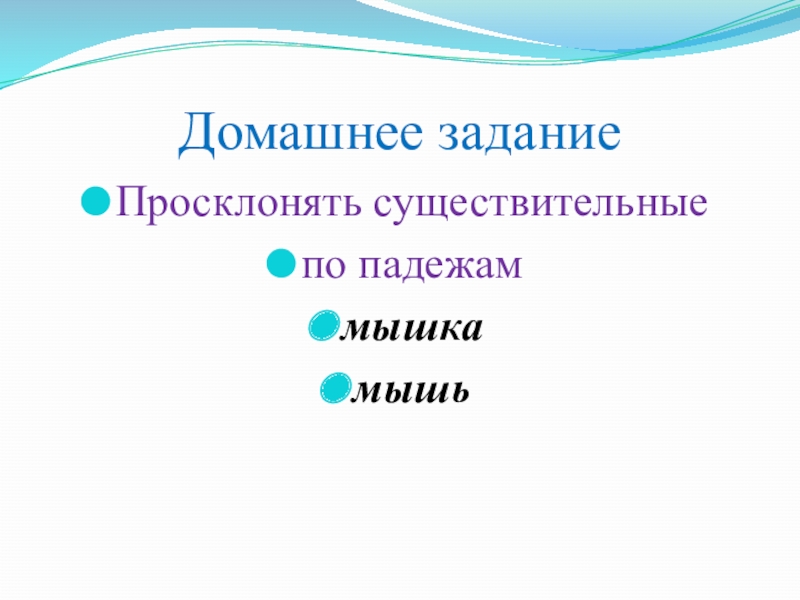 Домашнее заданиеПросклонять существительныепо падежаммышкамышь