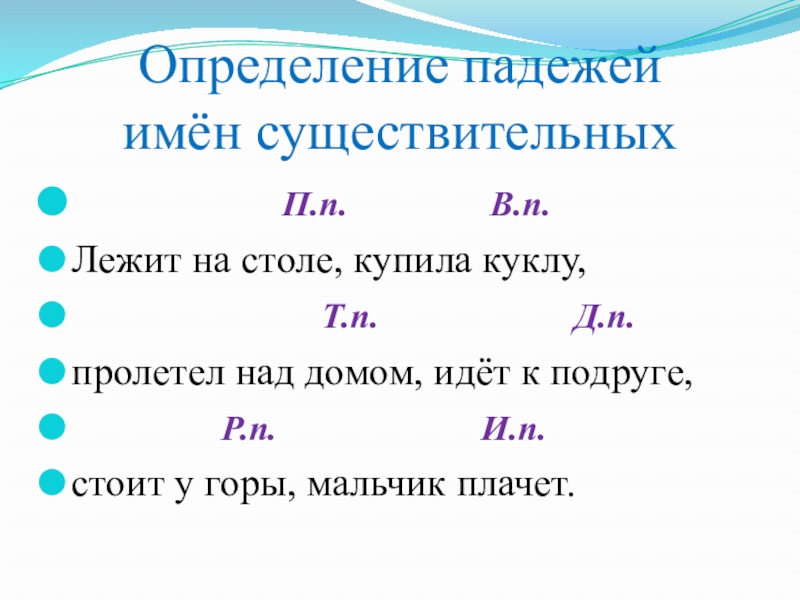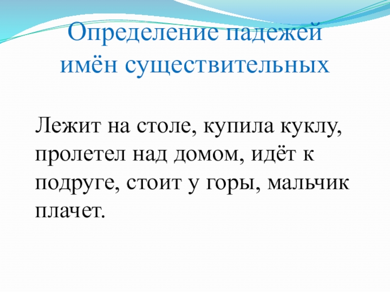 Лежит на столе, купила куклу, пролетел над домом, идёт к подруге, стоит у горы, мальчик плачет.