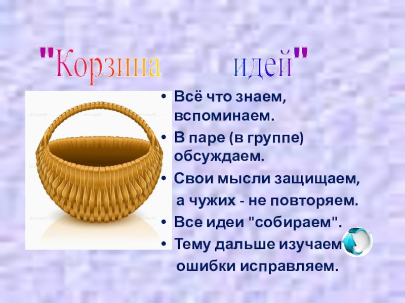Это сайт презентаций, где можно хранить и обмениваться своими презентациями, докладами, проектами, шаблонами в формате PowerPoint с другими пользователями. Мы помогаем школьникам, студентам, учителям, преподавателям хранить и обмениваться учебными материалами.