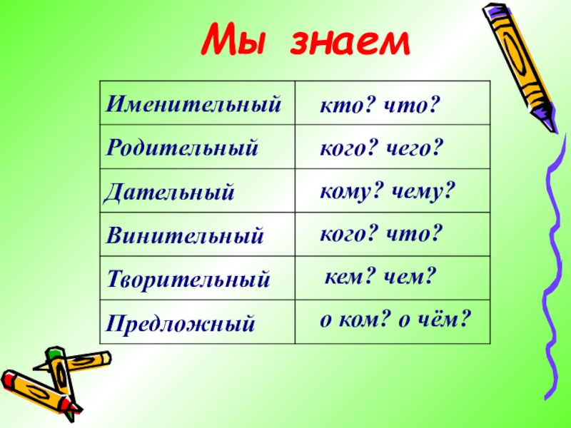 2) Этот падеж не дружит с предлогами, но подлежащее всегда стоит в этом падеже. _________