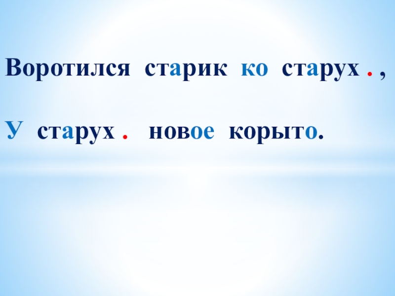 Слайд 7Воротился ст . рик (ко)ст . рух . ,