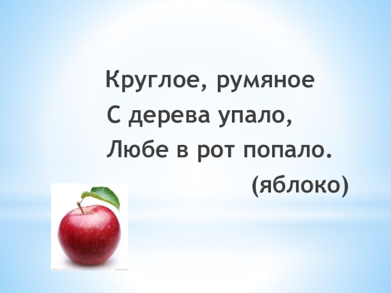 Круглое, румяное С дерева упало, Любе в рот попало.