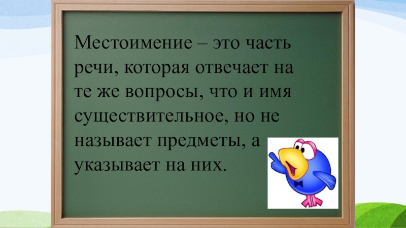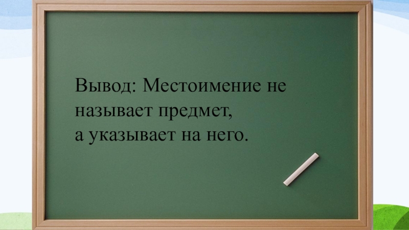 Вывод: Местоимение не называет предмет, а указывает на него.