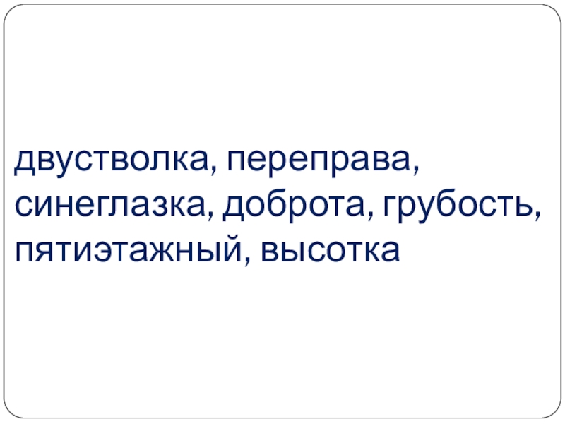 Слайд 21двустволка, переправа, синеглазка, доброта, грубость, пятиэтажный, высотка