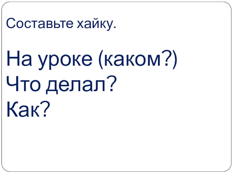 Составьте хайку.  На уроке (каком?) Что делал? Как?