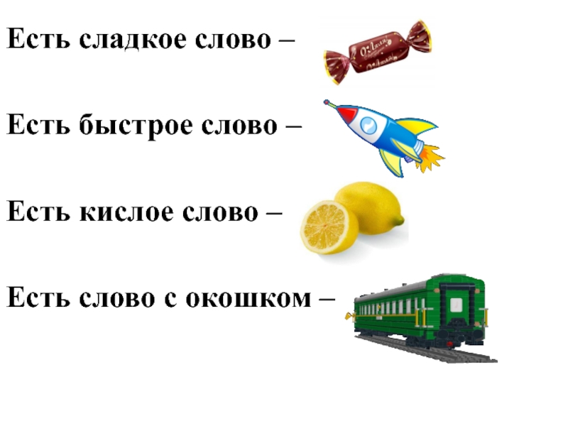 Есть сладкое слово –Есть быстрое слово – Есть кислое слово –  Есть слово с окошком –