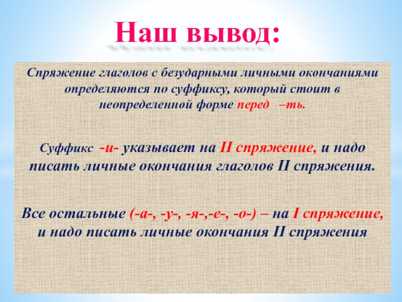 Глагол II спряжения, пишу и или –ат(ят) кроме глаголов-исключений