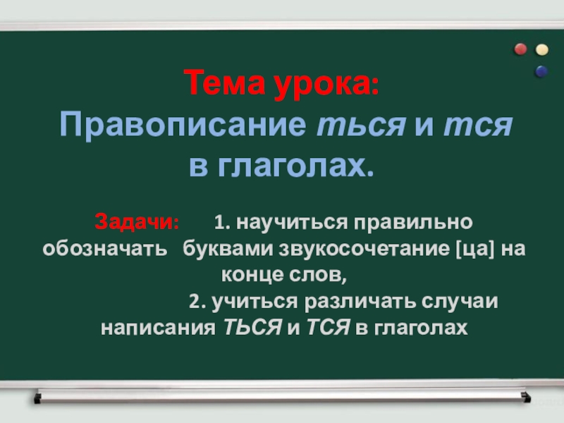 Тема урока:  Правописание ться и тся в глаголах.Задачи:    1. научиться правильно обозначать